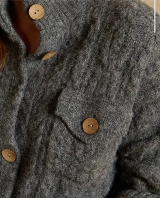 Cárdigan de punto grueso con textura de canalé. - Color gris. - Cierre de botones. - Cuello alto.