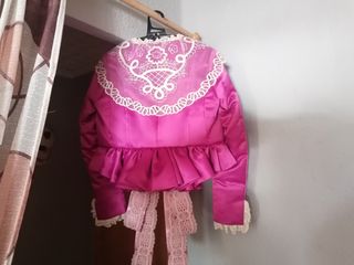 Traje de fallera del siglo XVIII para niña en un tono rosa fucsia magenta. Se incluye: -Manteletas con preciosos detalles a conjunto del color y estilo del traje. -Zapatos de tacón para niña con la misma tela. -Segundo corpiño de manga larga del mismo tono del traje y con acabados elegantes. La edad estaria entre 7-10 años dependiendo de la talla de la niña. MEDIDAS: Falda: 82cm (Largo) Corpiño: 36cm (L) 32cm (Ancho) Segundo Corpiño: 45cm (L) Para más información sobre el tallaje o medidas, más fotos o cualquier duda se puede hablar por privado, al igual que el precio, y se puede probar y venir a verlo en persona sin compromiso.