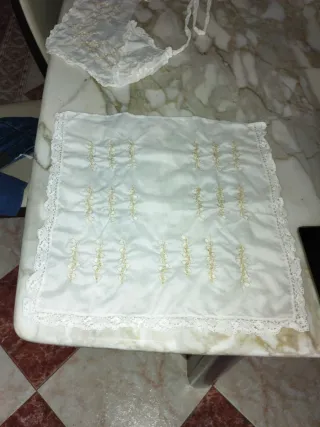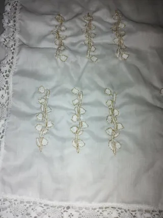 Manteletas falleras con un diseño floral y lazos bordados. - Adorno de encaje en los bordes. Se han llevado a la tintoreria hace dos días