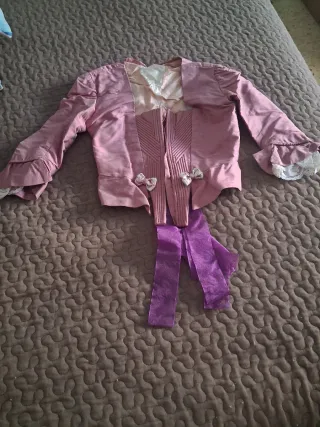 Se vende traje de fallera con manteletas en perfecto estado. Con posibilidad de solo vender la falda. De color rosa con manteletas plata. Regalo los zapatos de la talla 38/39 y tengo un retal de tela que vendo a parte por si lo necesitaras.