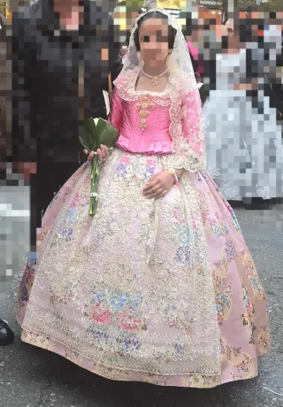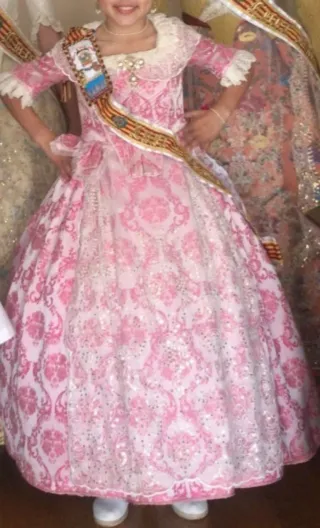 Traje de fallera para alquilar de 8 a 10 años. - Un diseño elegante que convina diferentes tonos de rosa con dorado. - Incluye manteletas y detalles de encaje en color blanco roto con lentejuelas doradas. - Días sueltos 150+125+100 € - Fallas completas 3dias+25€ = 400 euros Aparte: - Disponible algun traje más, cada uno de diferente color y tamaño. - Preguntar medidas si estáis interesados ya que por edades son muy relativas las medidas. - Fianza en todos los trajes de 300 euros, reembolsable al devolver el traje en las mismas condiciones. - Limpieza aparte, se descontará de la fianza o se realizara por parte del que lo alquila.