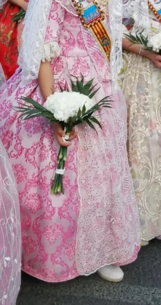 Traje de fallera mayor infantil. De 8 a 10 años, con posibilidad de ver en persona y probar. Manteletas y puntilla de artesanía Viana. - Medidas de la falda: 90 cm de largo ( con posibilidad de sacar tela del bajo) 66cm de cintura Medidas del corpiño: 35cm hombro-cintura 6,5 cm los dos volantes 33 cm la manga (con la puntilla) 68 cm el contorno 650€. Traje puesto muy poco, está en estado nuevo