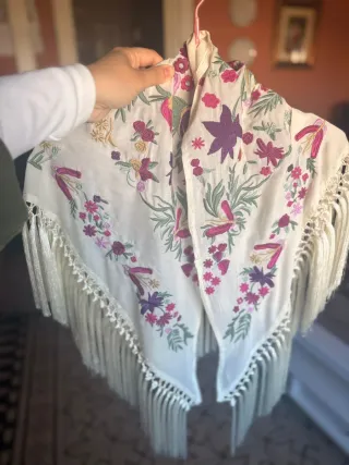 🌺 Mantoncillo Buganvilla con Bordado Multicolor – Estilo Flamenco Vibrante y con Mucha Alegría 🌺 Dale color, alegría y movimiento a tu look flamenco con este precioso mantoncillo en tono buganvilla, realzado con un bordado multicolor lleno de detalles florales. Una pieza atrevida, favorecedora y con mucha vida, perfecta para destacar en cualquier evento andaluz. ⭐ Características destacadas: ✅ Medidas ideales: 1,5 m de pico a pico y 0,80 m del centro al pico del medio. Proporciona una caída perfecta y favorecedora. ✅ Flecos de 30 cm (34 cm en el centro aprox.): Aportan mucho movimiento y estilizan la silueta. ✅ 100% Poliéster: Tejido fluido, con buena caída y muy cómodo de llevar. ✅ Bordado floral multicolor de alta calidad: Detalles vivos en tonos rojo, azul, verde, rosa y amarillo que realzan el conjunto. ✅ Enrejado trabajado de 5 cm: Acabado que aporta un extra de elegancia. ✅ Versátil y alegre: Ideal para la Feria de Abril, El Rocío, romerías, bodas flamencas y actuaciones. ✨ ¿Te gusta? No lo dejes escapar. Puedo ayudarte a combinarlo con pendientes, pulseras, flores y más complementos que tengo disponibles para que consigas un look flamenco espectacular. 📦 Envío rápido y seguro desde España. 📌 Hashtags: #MantoncilloBuganvilla #ModaFlamenca #FeriaDeAbril #ElRocío #ComplementosFlamencos #EstiloAndaluz #MantónBordado #LookFlamenco #ArteFlamenco #FlamencaConColor