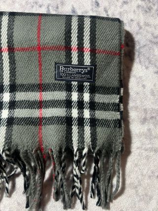 Bufanda de la marca Burberry con el icónico diseño tartán. - Diseño clásico en tonos beige, negro, blanco y rojo. - Acabado con flecos en los extremos.