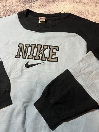 Sudadera de manga larga con un diseño moderno y llamativo. - Paneles de color negro y azul claro. - Logo de Nike bordado en la parte frontal.
