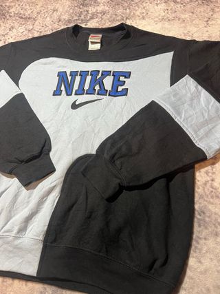 Sudadera de la marca Nike con un diseño moderno y llamativo. - Combinación de colores negro y azul. - Corte clásico y cómodo.