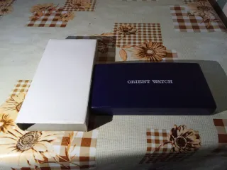 Caja original para reloj de la marca Orient Watch. Es de color azul oscuro con el logo en blanco. - Caja de cartón rígido. - Interior forrado.