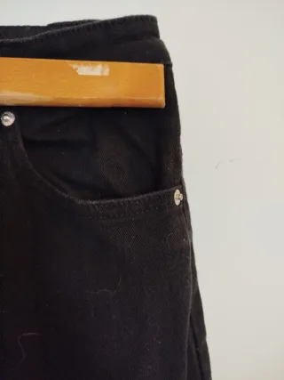 Elegante pantalón negro de la marca Cortefiel, con un detalle de cadena dorada en la cintura. Está nuevo, con etiqueta.