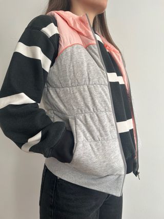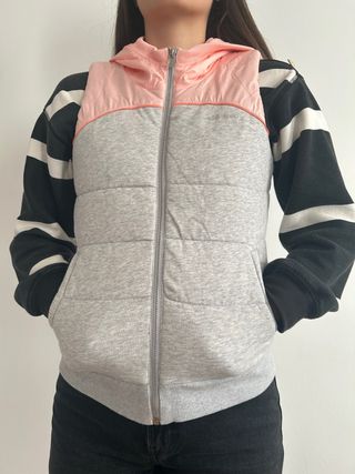 Se vende un chaleco de Adidas de colores gris y rosa. Es de talla XS y está en muy buen estado. Tiene dos bolsillos