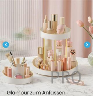 Elegante organizador de maquillaje con un diseño moderno y funcional. Perfecto para mantener tus productos de belleza ordenados y accesibles. - Diseño con múltiples compartimentos. - Acabado texturizado. - Patas de madera para un toque sofisticado. -(No es de Agatha es impresión 3D)