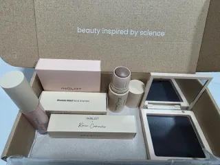 Set de neceser de maquillaje con más de 40 piezas, todo sin estrenar. - Incluye neceser transparente con asa. - Variedad de brochas y esponjas de maquillaje. - Accesorios para el cuidado facial.