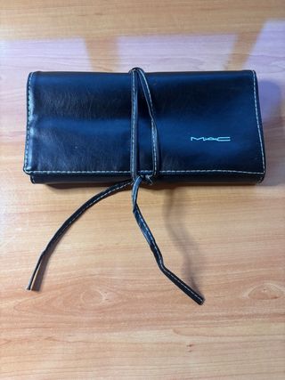 Estuche de viaje para brochas y maquillaje de la marca MAC. Es negro y está en buen estado. Esta muy bien cuidado aunque tiene algunas manchas que hay podido dejar las brochas. hay tenido muy muy poco uso. - Perfecto para llevar tus esenciales de maquillaje donde quieras. - Diseño enrollable y compacto. - Cierre con correa de charol.