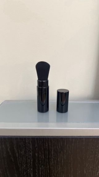 Preciosa brocha retráctil de la marca Sephora. Es de color negro y tiene un diseño elegante y compacto. - Perfecta para llevar en el bolso. - Incluye la brocha y su estuche.