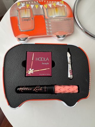 Estuche de maquilla de Benefit. Contiene Hoola en tamaño grande, máscara de pestañas Roller Lash en grande y el tamaño mini del Gimme Brow en el numero 3. Nuevo sin estrenar. El precio total de cada cosa por separado sería de un total de 94€.