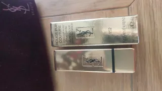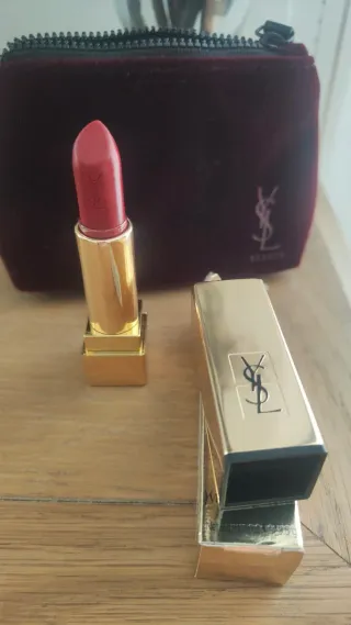 Barra de labios de la marca Yves Saint Laurent. - Tono rojo vibrante. - Acabado dorado en el estuche.