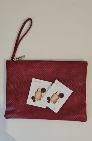 Bolso de mano o neceser sin estrenar. Incluye un sobre de Super Soin Autobronzant Hydratant Corps de Sisley, otro sobre de corrector de ojeras también de Sisley y un sobre de. Fondo de maquillaje Chanel.