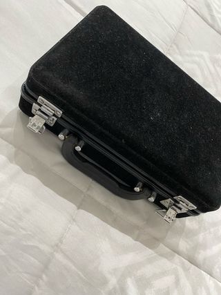 Elegante maletín o neceser con acabado en terciopelo. - Cierre con dos broches metálicos. - Asa de transporte. - Diseño compacto y funcional.