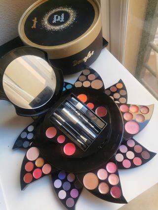 Estuche/ cofre/paleta/maletin/neceser/set de maquillaje con espejo + caja y protector SIN ESTRENAR: Incluye: *Espejo *Sombra de ojos *Lápiz de ojos *Coloretes *Polvos correctores *Polvos bronceadores *Maquillaje para cejas * Diferentes tonalidades de colores labiales *Máscara de pestañas *Aplicadores de color (brochas, pinceles labial) *Gloss labial