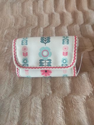 Estuche/neceser con estampado de flores en tonos rosas, en la cremallera tiene un pompón de hilo. Por dentro está plastificada la tela. Ideal para material escolar o para maquillaje por ejemplo 100% algodón 22 cm de largo aprox y 8 cm de ancho aprox