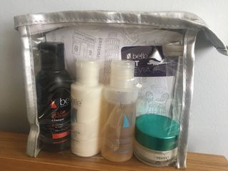 Kit cosméticos viaje Belle Eroski, en neceser transparente. Nuevo, no abierto, precintado el neceser.