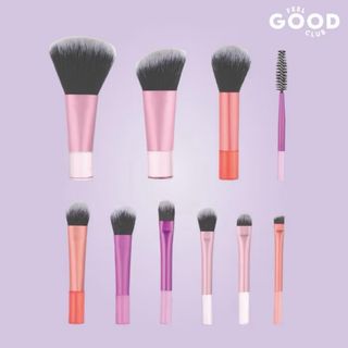 Set de 10 mini brochas de maquillaje, perfectas para llevar de viaje. Vienen con un estuche para guardarlas. Completamente nuevo. - Variedad de tamaños y formas de brochas. - Neceser con cierre de cremallera de 13,5 cm x 8 cm.