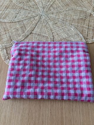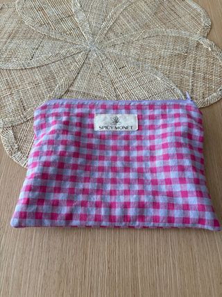 Neceser de tela de cuadros vichy en morado y rosa de la marca Spicy Monet, por dentro tiene una tela de cuadraditos y flores. Medidas 20 cm de largo x 15 cm de alto. Ideal para utilizar como estuche para bolígrafos, maquillaje o para llevar en el bolso con kit de imprescindibles.