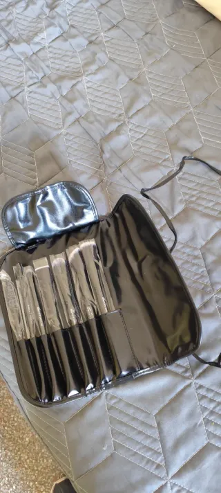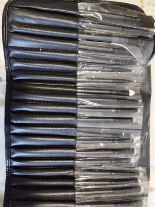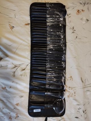 Set de brochas y pinceles de maquillaje, 32 piezas, marca Uspicy. Nuevos sin usar. Con estuche de viaje. El estuche del roce de la cuerda que lo ata, se ha desgastado un poco, y se le ha ido la polipiel, de ahí el precio tan barato. Escucho ofertas razonables.