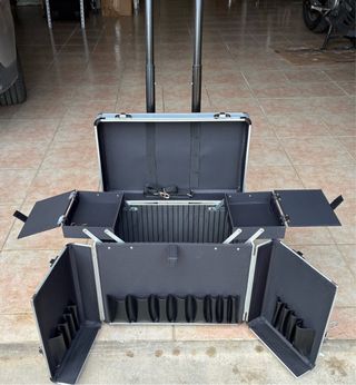 Vendo maleta trolley para peluquería y maquillaje. Está en buenas condiciones y es muy práctica para transportar todo lo necesario. - Tiene dos compartimentos con cierres. - Asa de transporte superior. - Sistema de ruedas para facilitar el desplazamiento.