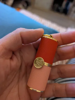 Elegante carcasa para labial mini tint de Carolina Herrera - Diseño bicolor en rojo y rosa. - Detalle metálico dorado con logo CH.