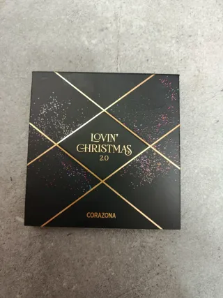 Paleta de sombras de ojos Lovin Christmas 2.0 de Corazona. Presenta un diseño elegante con detalles dorados y confeti brillante. - Diseño con líneas doradas cruzadas. - Detalles de confeti en tonos pastel.