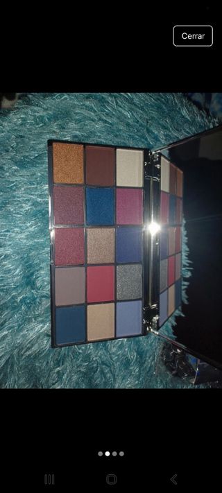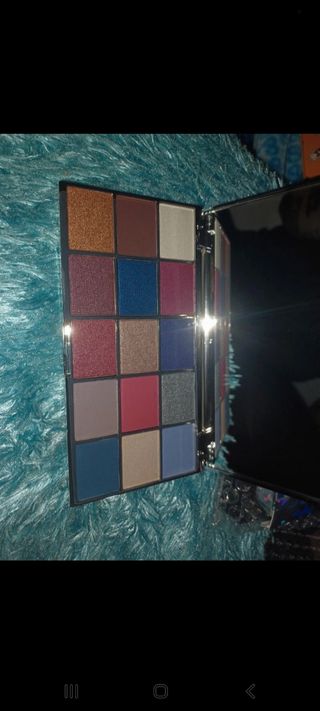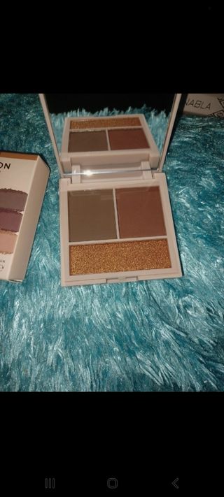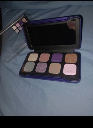 Paleta sin usar. La brocha de ojos está manchada de una de las sombras porque quise ver el color por curiosidad. Con su caja.