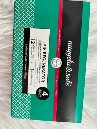 Tratamiento capilar Nuggela & Sulé Hair Regenerator. Nuggela & Sulé Ampollas Regenerador Capilar. Con activos que aumentan la densidad y el grosor del cabello. Ideal para zonas despobladas. Tratamiento 4 ampollas, una de ellas parece tener un poco de producto en el tapón 13,50€ - 12 aplicaciones. - 4 ampollas grandes. - 1 mes de uso. - Con Maca Andina.