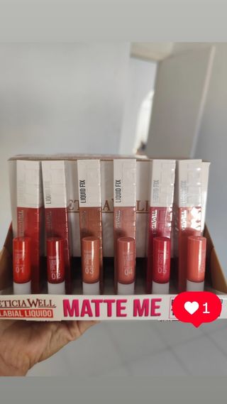 Set de 5 labiales líquidos con acabado mate. Fijos más de doce horas, colores increíbles. Si te llevas la linea entera se quedan a dos. - Marca: Teticia Well - Modelo: Liquid Fix - Acabado: Mate - Tonos: 01, 02, 03, 04, 05