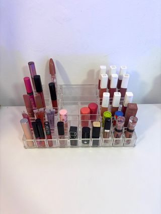 Organizador transparente para pintalabios y otros cosméticos. - Diseño con múltiples compartimentos ( no incluyo los pintalabios) - Material acrílico resistente.