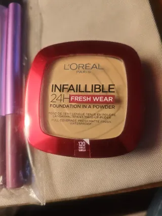 Set de maquillaje L'Oréal Paris. - Base de maquillaje en polvo Infalible 24H Fresh Wear. - Juego de brochas de maquillaje.
