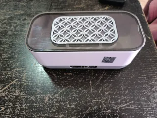 Dispositivo para la limpieza de brochas de maquillaje y gafas. Cuenta con un diseño moderno y compacto. - Rejilla superior decorativa. - Base en tono blanco. - Superficie superior transparente. -Luz ultra violeta y vibración para una mejor limpieza.