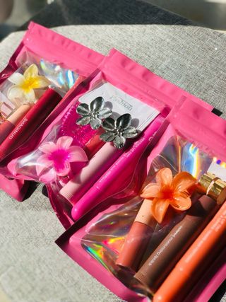 Set de cosméticos con flores , pendientes y mas