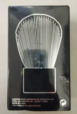 Brocha de maquillaje de la marca CAPUCCINI. Su mango es de color negro y las cerdas son de tonos oscuros y claros. - Cerdas suaves para una aplicación uniforme. - Mango ergonómico para un buen agarre.