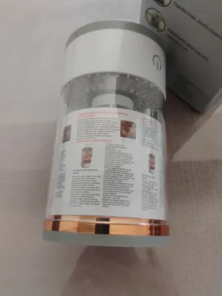 Dispositivo automático para la limpieza profunda de brochas de maquillaje. Incluye un recipiente para el agua y el limpiador. - Diseño moderno en blanco y dorado. - Limpieza eficiente y rápida.