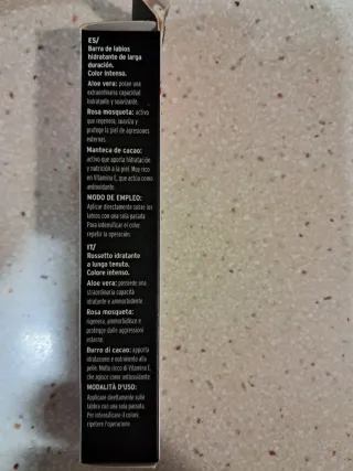 Labial hidratante de larga duración con color intenso. - Fórmula con aloe vera. - Contiene rosa mosqueta. - Incluye manteca de cacao.