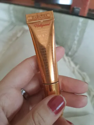 Iluminador de la marca Charlotte Tilbury en tono dorado. - Envase de 5ml. - Diseño elegante y compacto.