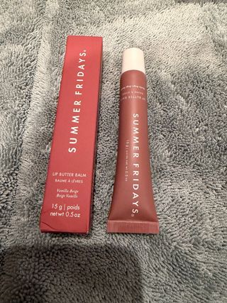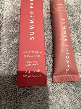 Bálsamo labial Summer Fridays en tono Vanilla Beige. Ideal para el cuidado de los labios. - Contiene 15 g / 0.5 oz. - Fórmula nutritiva.