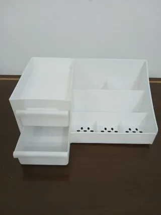 Práctico organizador de sobremesa con varios compartimentos y cajones. - Diseño moderno y funcional. - Múltiples divisiones para diferentes productos. - dos cajones extraíbles para mayor organización.
