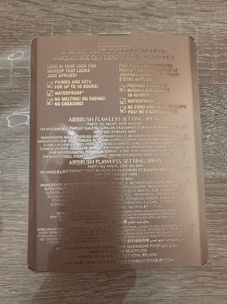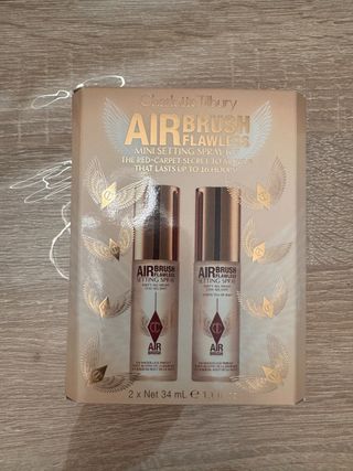 Kit de dos fijadores de maquillaje tamaño mini de Charlotte Tilbury comprado por error, abierto únicamente para verificar que estén bien. - Incluye dos unidades de 34 ml cada una. - Formato viaje. - Ideal para mantener el maquillaje intacto.