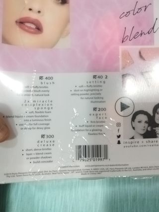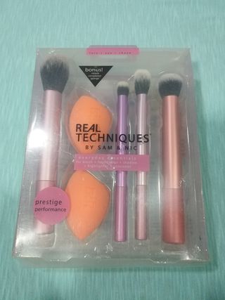 Set de brochas y esponjas de maquillaje Real Techniques. - Incluye 5 brochas para rostro, ojos y mejillas. - Incluye 2 esponjas de maquillaje. - Ideal para una rutina de maquillaje completa.