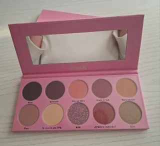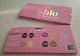 Paleta de sombras de ojos Krash by Pablo con tonos marrones y rosados. - 10 sombras de ojos. - Incluye espejo. - Nombres de las sombras: 19cm, Ignoradx, Gire me likes, Single & Fab, Buen intento, Paso, Te reo en mis DMs, SOS, ¿Quién te entiende?, Next. EN EMBALAJE ORIGINAL Y PLASTICO PROTECTOR.NUNCA USADA