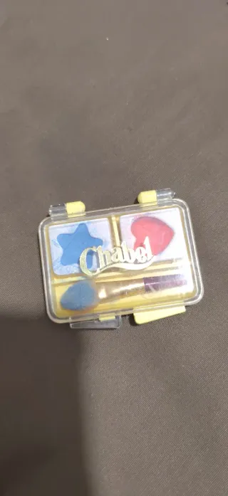 Set de maquillaje infantil de la marca Chabel. Incluye dos sombras de ojos y aplicador. - Diseño con forma de estrella y corazón. - Tonos de azul y rojo.