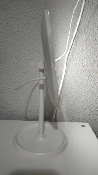 Este espejo de mesa es perfecto para tu tocador o baño. Su diseño giratorio permite ajustar el ángulo fácilmente. - Base redonda y estable. - Brazo metálico ajustable. - Acabado brillante.