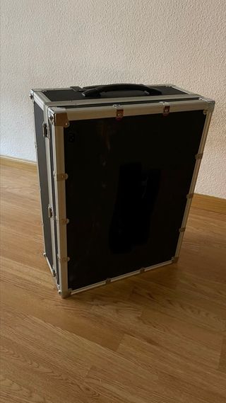 Cofre, set, maletín de maquillaje profesional. Estuche de maquillaje de aluminio de gran capacidad. Maletín multifuncional de 3 niveles con esquinas reforzadas. Organizador de cosméticos. También ideal para guardar accesorios, joyas, pequeños complementos. Dispone de 3 niveles en el interior. Cierre de seguridad. Medidas de la caja: 20,5 x 16 x 15,5 (ver detalle en foto). Por higiene se vende sin los cosméticos, sólo el maletín. En perfecto estado, sin uso.