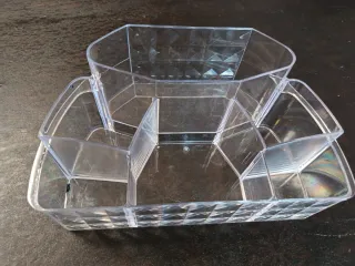 Práctico organizador de acrílico transparente con varios compartimentos. - Diseño octogonal. - Ideal para cosméticos y accesorios. - Material acrílico resistente.